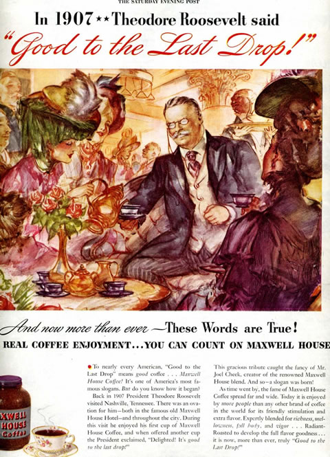 Coffee plants reached the New World during the early 18th century, though the drink wasn’t really popular in America until the Boston Tea Party of 1773, when making the switch from tea to coffee became something of a patriotic duty. The Civil War and other conflicts that followed also helped to increase coffee consumption, as soldiers relied on the caffeine for a boost of energy. It may have started a bit later here, but Americans love coffee just as much as the rest of the world. Teddy Roosevelt himself is counted among America’s great coffee drinkers due to his rumored consumption of a gallon of coffee daily! Roosevelt is also said to have coined Maxwell House’s famous “Good to the Last Drop” slogan after being served the coffee at Andrew Jackson’s historical home, the Hermitage, in Tennessee.