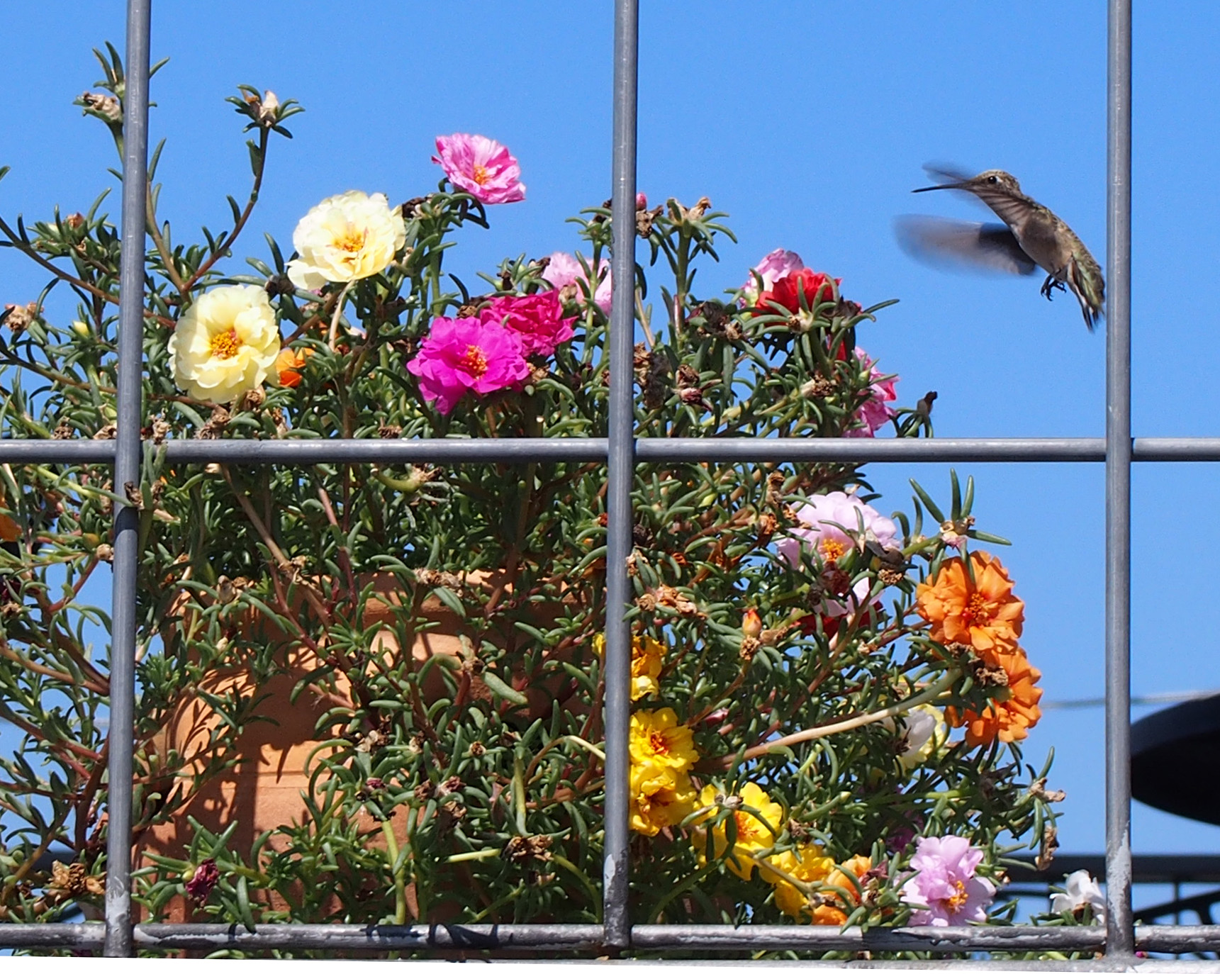 As I was taking the photo, this Hummingbird came and stated going from flower to flower.