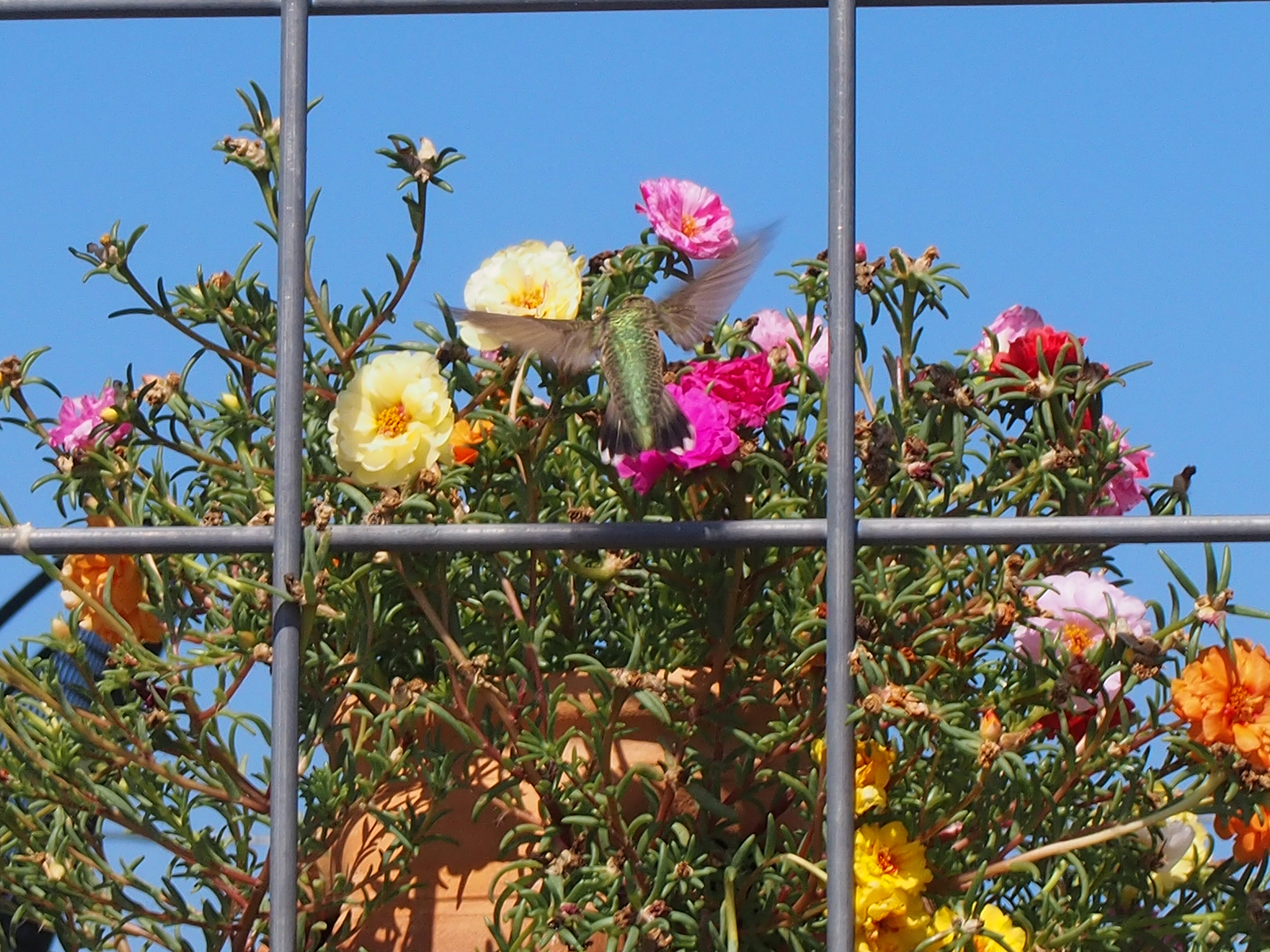 As I was taking the photo, this Hummingbird came and started going from flower to flower.