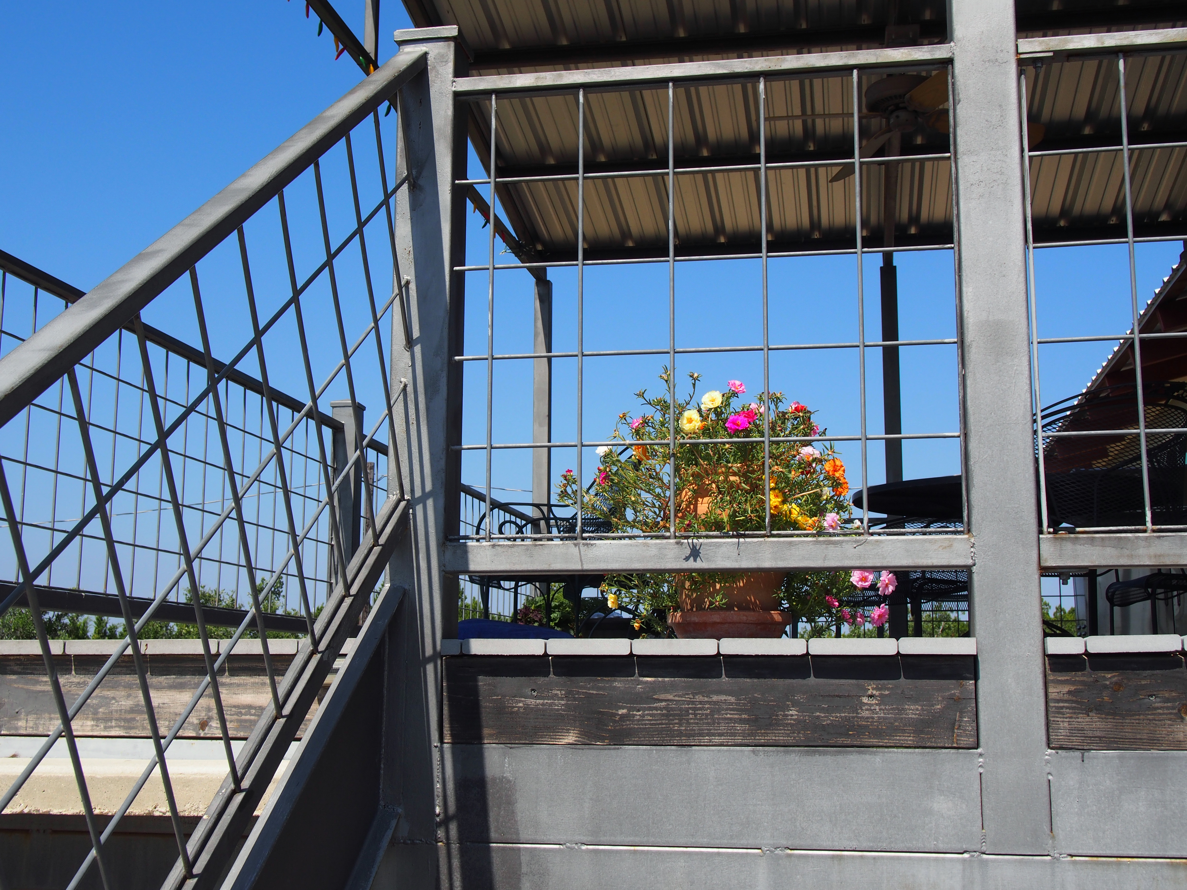 Stairs to porch. I have Portulaca flowers at several locations and moved these here yesterday.  I wanted a photo showing placement.
