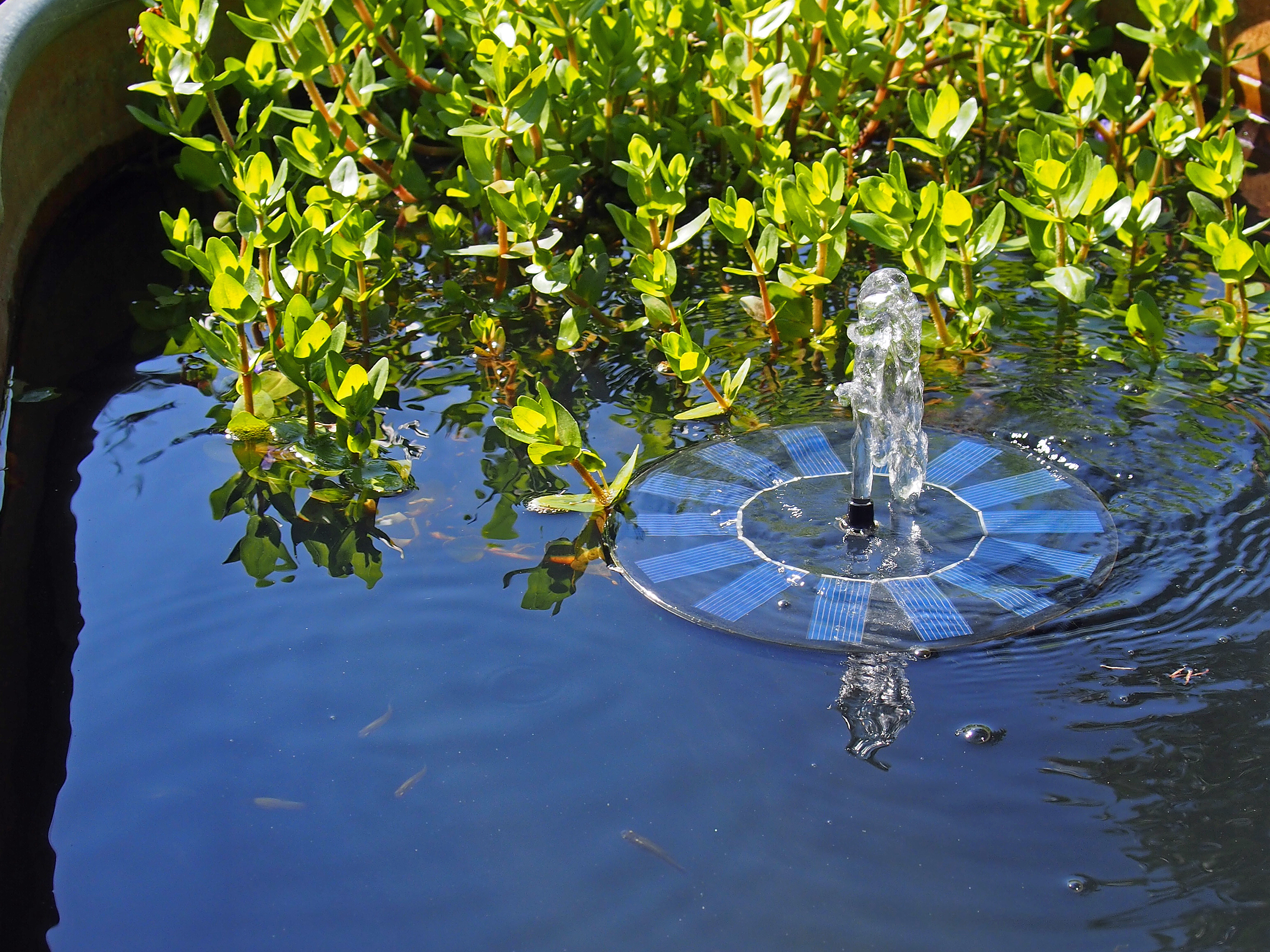 Close up of solar pump (for aeration)  we also keep Gambusia (Mosquito fish) in all the tanks.