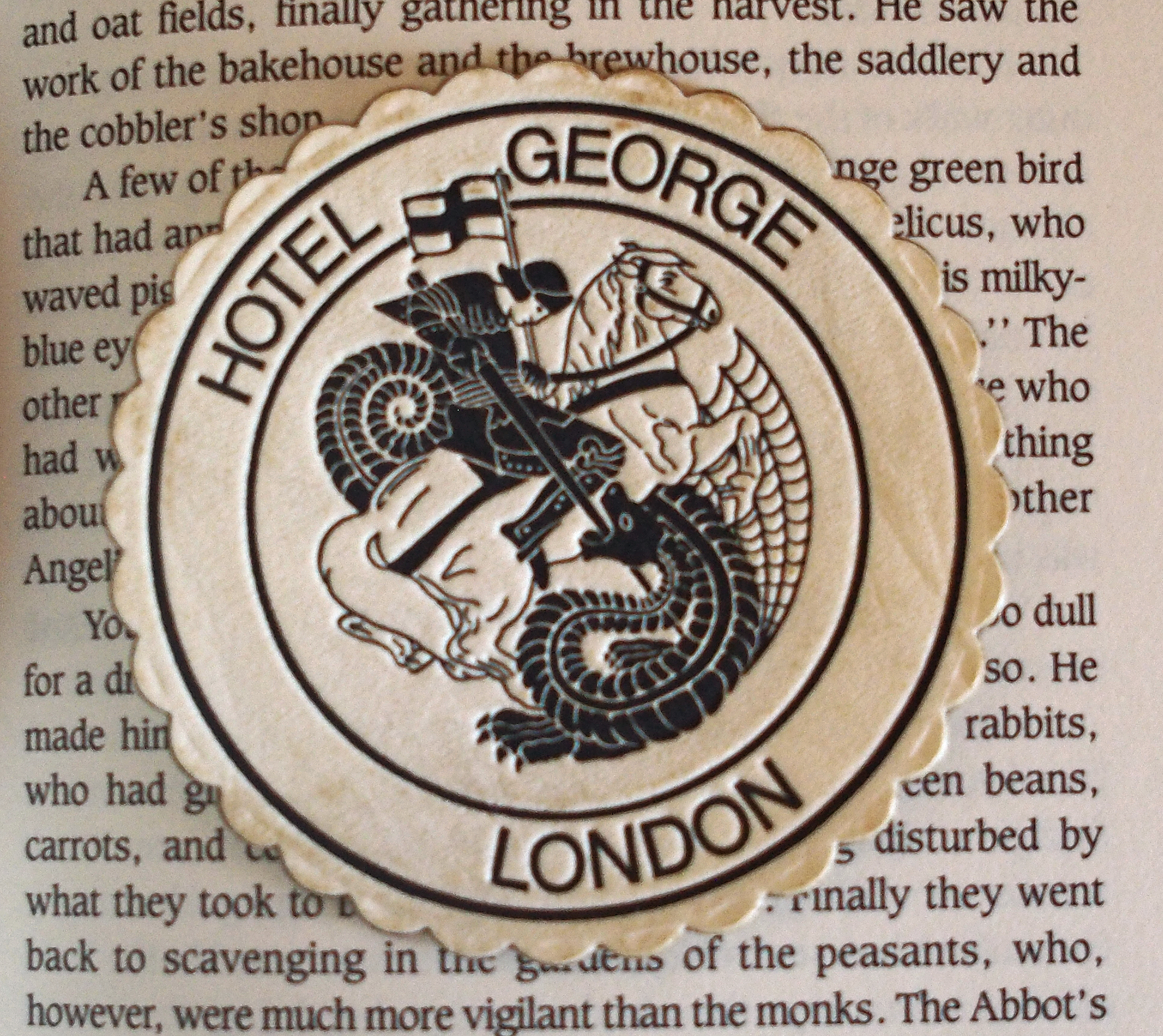 I found this paper coaster from the Hotel George, London in between the pages of the book.