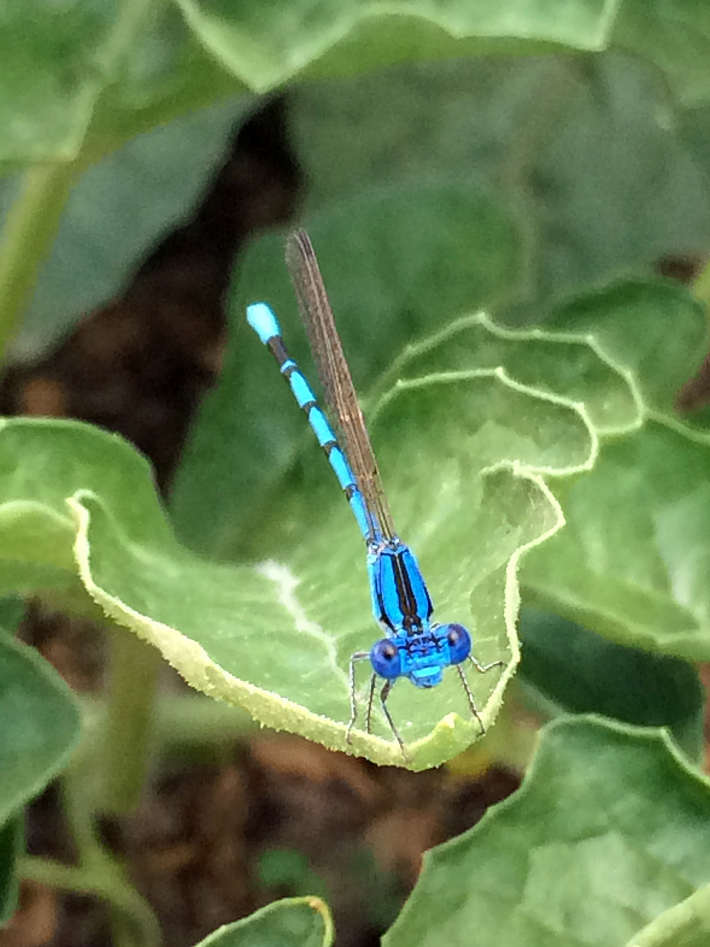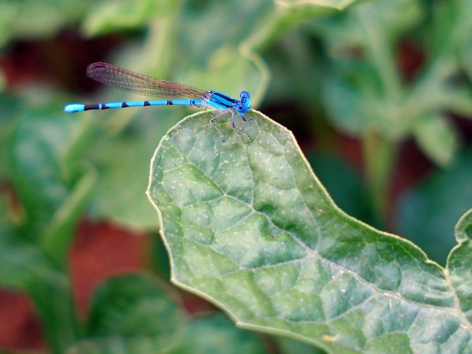 Garden Visitor June 23, 2017August 26, 2017 / coffeeandcapturedmoments I spotted a bit of blue among the watermelon leaves and found this bright blue Damselfly. Damselfly – taken with Olympus E-PL5 using 19mm lens, f2.8. I’m watching you, lady! Taken with iphone 5s. Share this: Click to share on X (Opens in new window) X Click to share on Facebook (Opens in new window) Facebook Click to share on Pinterest (Opens in new window) Pinterest Like Loading... Related