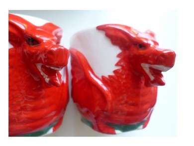 Last is a set of three wooden egg cups with the Welsh dragon on one side.  The other side you may have engraved to your specification.  These can be found at Cadwyn.