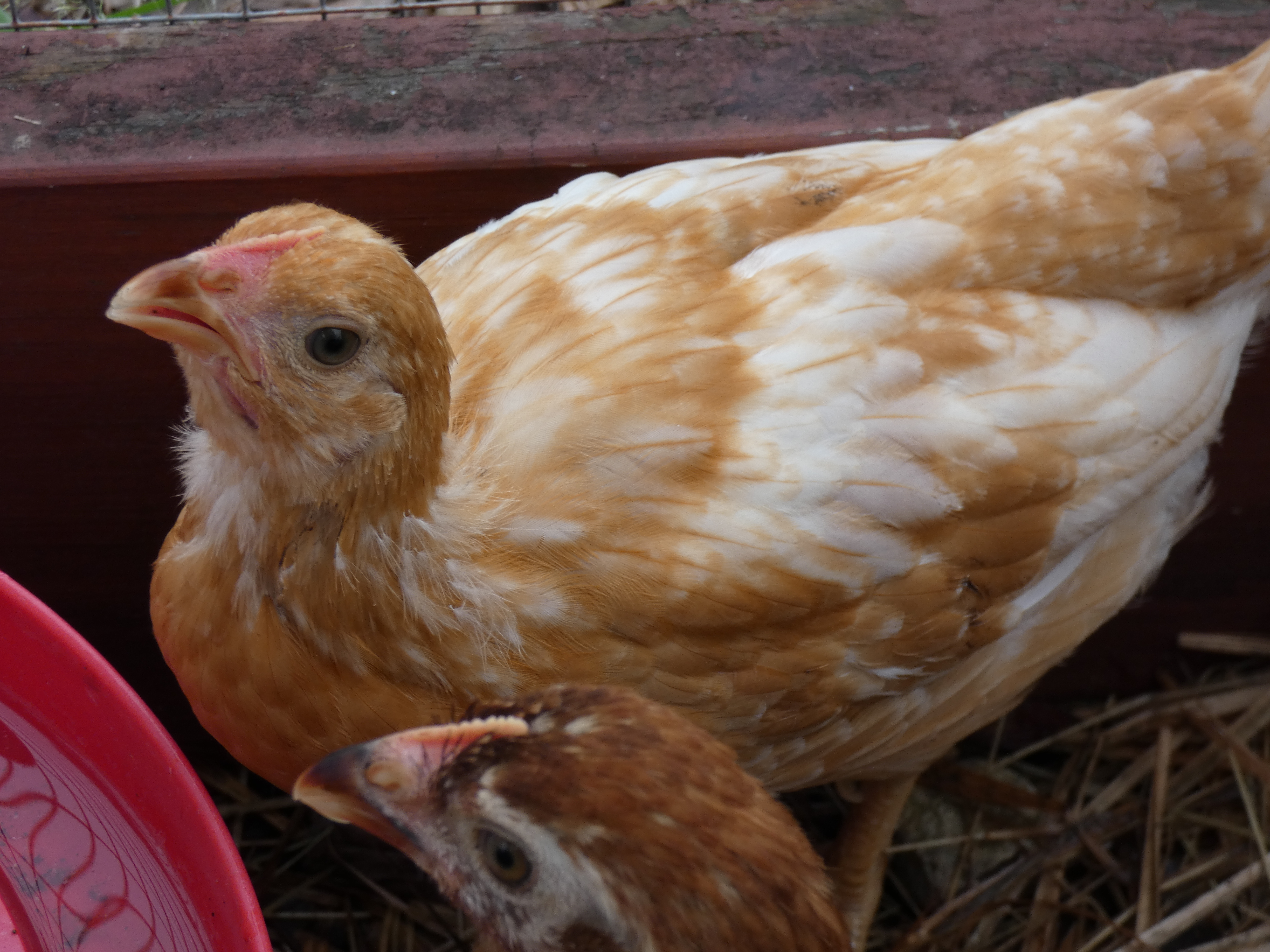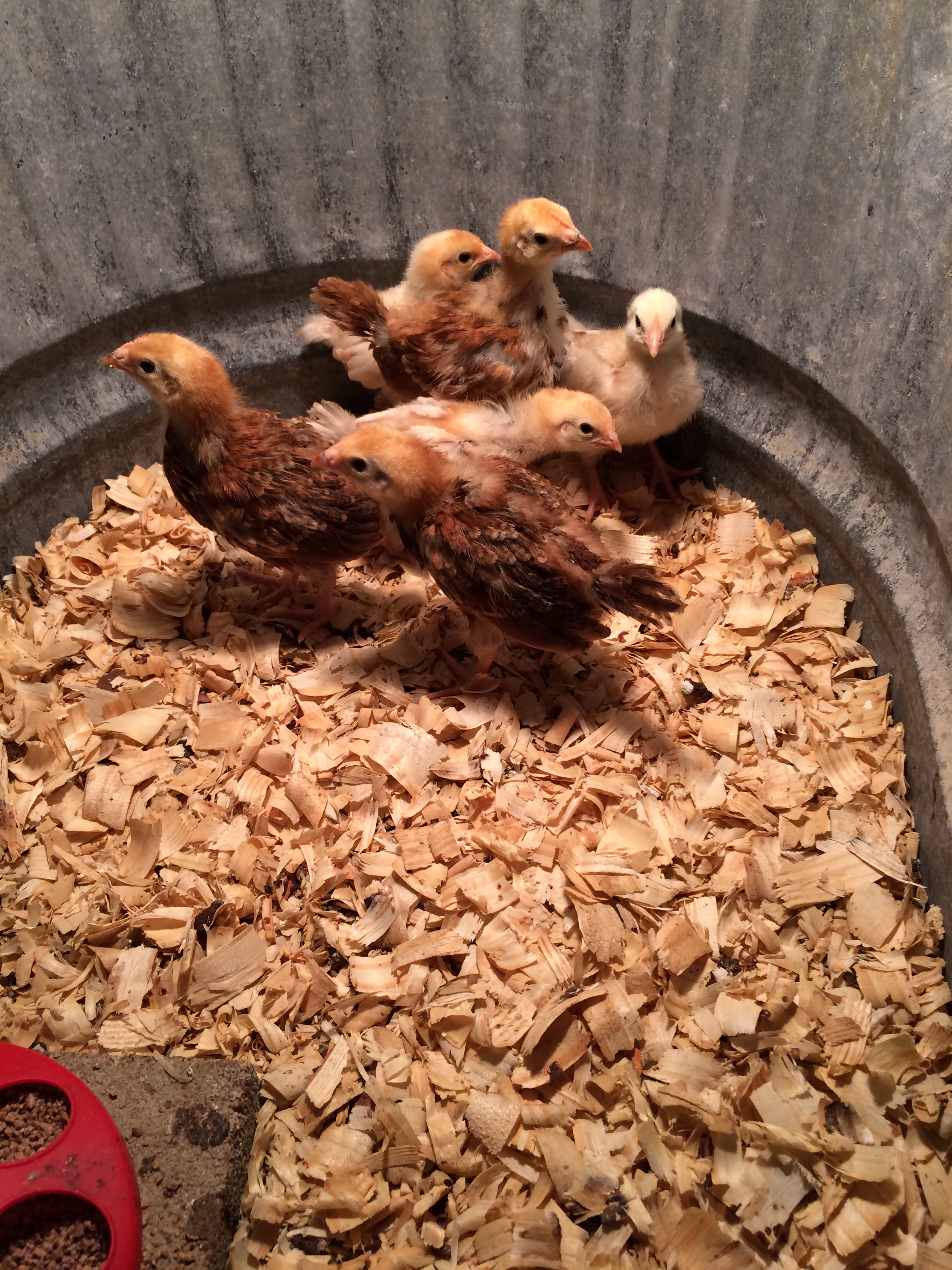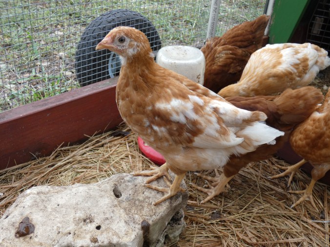 We can’t put the chicks with the older hens yet, they are too small and I have seen the chickens attack birds at the bird feeder. We also read that this breed does not mix flocks well. We will see.