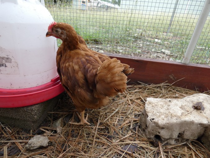 Leave it to hungry predators to show you where the weak spots are in your coop. The mobile coop doesn’t have much ground protection due to it being mobile. The large coop has hardware cloth extending past the bottom, out two feet, covered in dirt and then large rocks. This has kept the digging predators at bay so far. Our little chicks were not so lucky. We lost one of the red sex links last night some time. The digging looked small, possibly a possum. Our predators are possums, raccoons, and foxes. I have spent the morning reinforcing the area around the base of the mobile coop. I will be glad when the girls are big enough to go in with the older chickens.