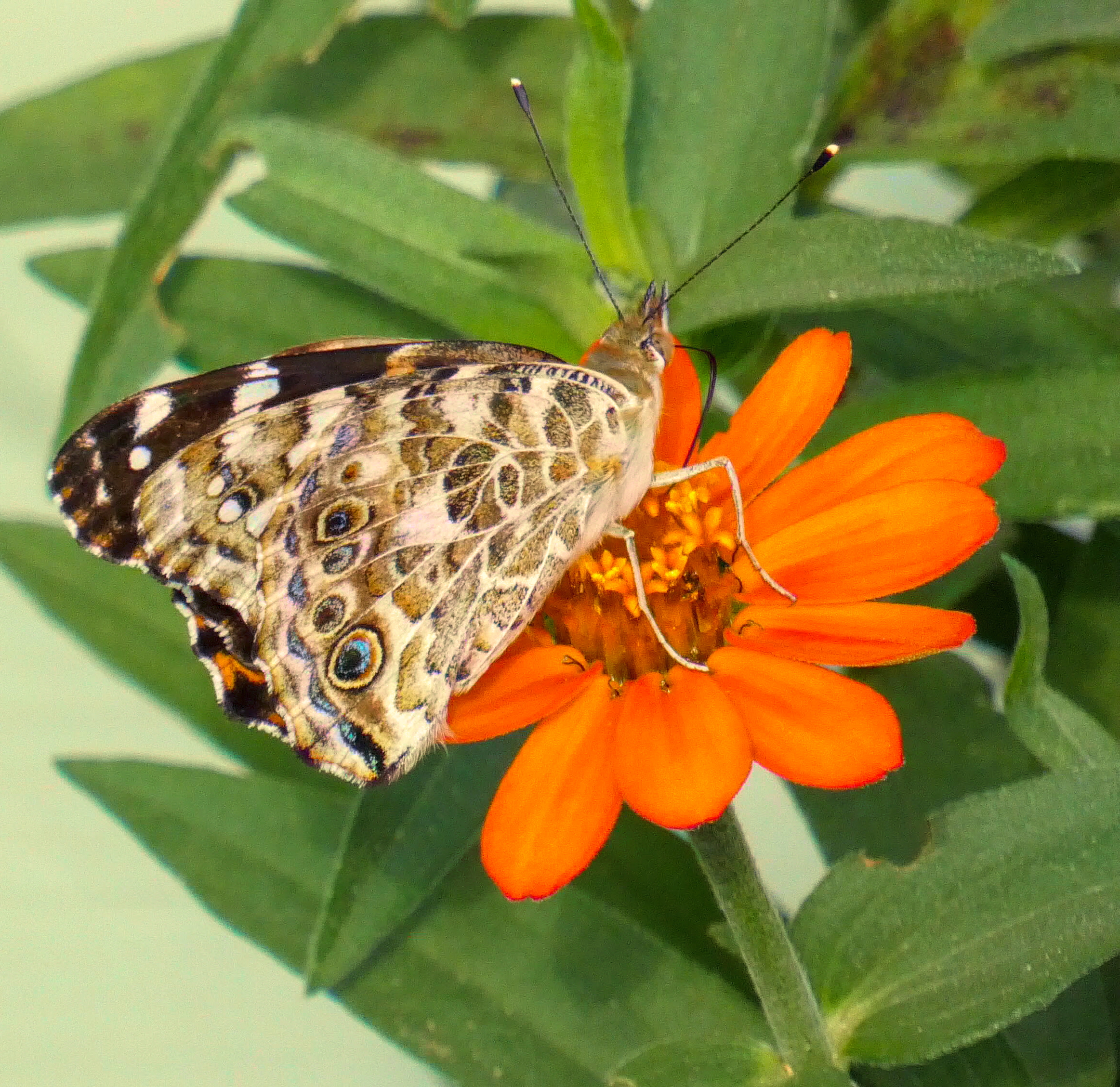 I brought him to the garden and he clung to the flower petal for a few seconds. You can see the orange tinted spots.