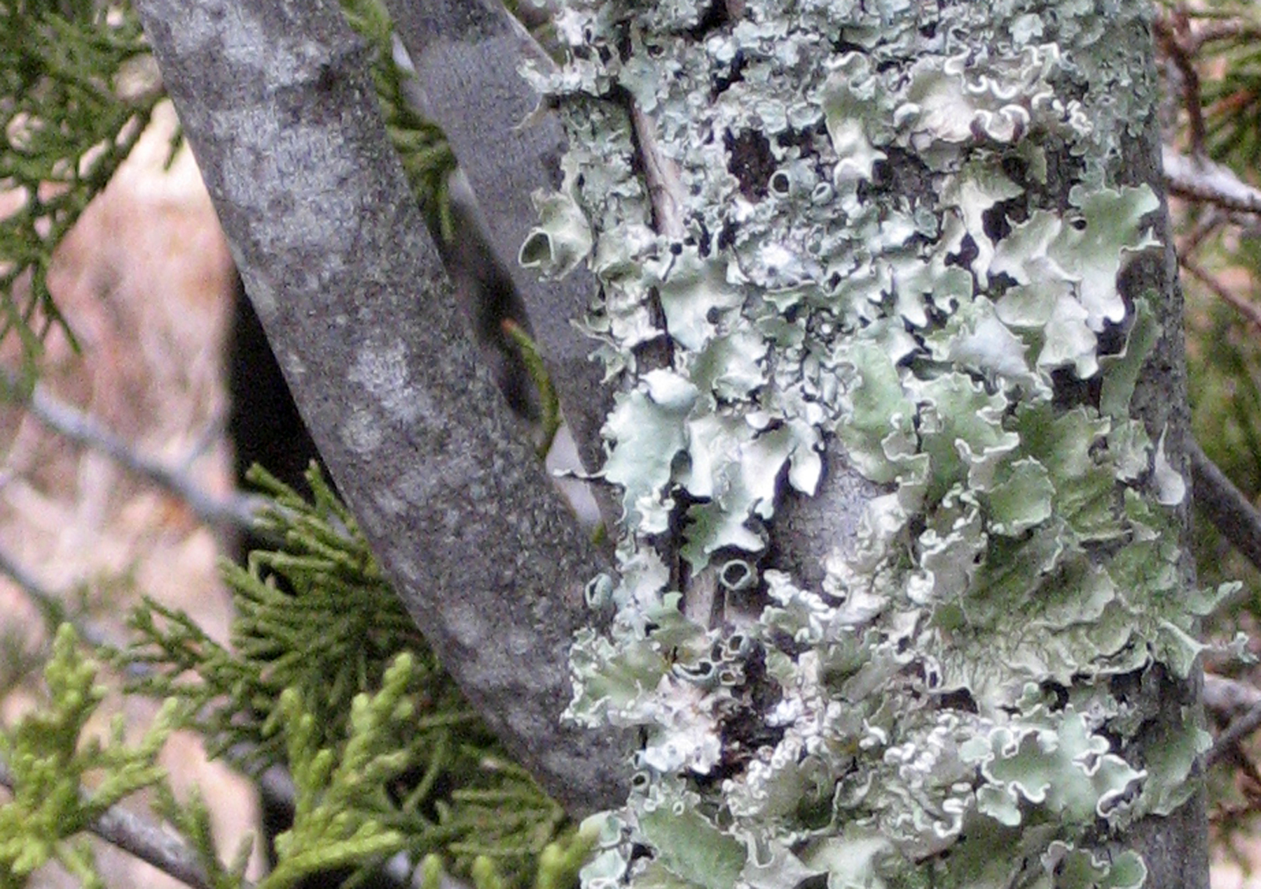 I love the texture of lichen on the trees. The gray-green color, the frills.
