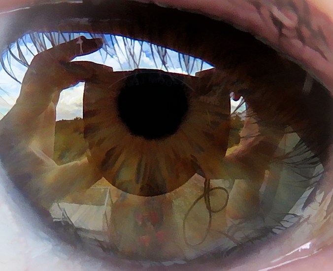 A few years ago I decided to see if I could take a photo of my eye. Weird? Maybe a little, but fun. I held the camera up to my face and snapped away. I discovered how reflective our eyes are, and how many wrinkles and freckles I have. Thank goodness for cropping. 😉