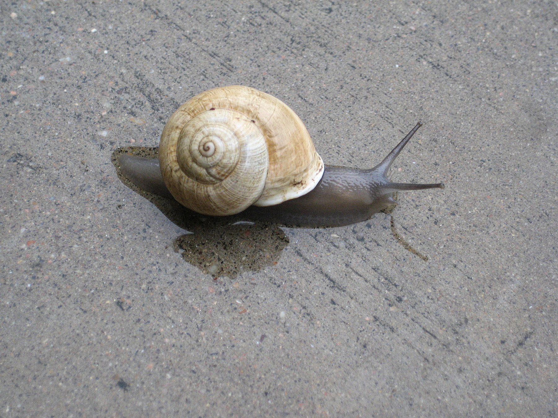 I am having a hard time keeping my momentum going today. I was sitting drinking my second cup of coffee, looking through photos and came across this snail photo. It was taken after it had rained. The house we lived in at the time had a very healthy snail population and it was common to see their silvery trails along the sidewalks in the morning.