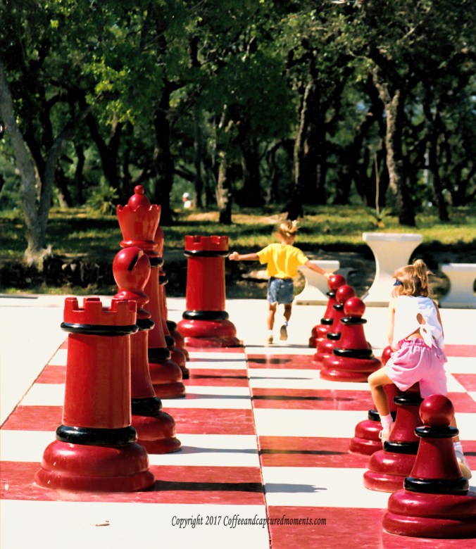 I wish I could remember where this photo was taken. It is from the days when I was using an old 35mm Vivitar SLR camera. I have boxes of photos and even more negatives that I need to sort into some kind of order. I scanned this photo using an Epson Perfection v600 scanner, then did a little clean up using Adobe Photoshop Elements 13 and Topaz Studio. In the original photo, the chess pieces have seen better days.