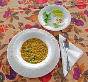 Coconut Red Lentil with Spinach, Cashews and Lime
