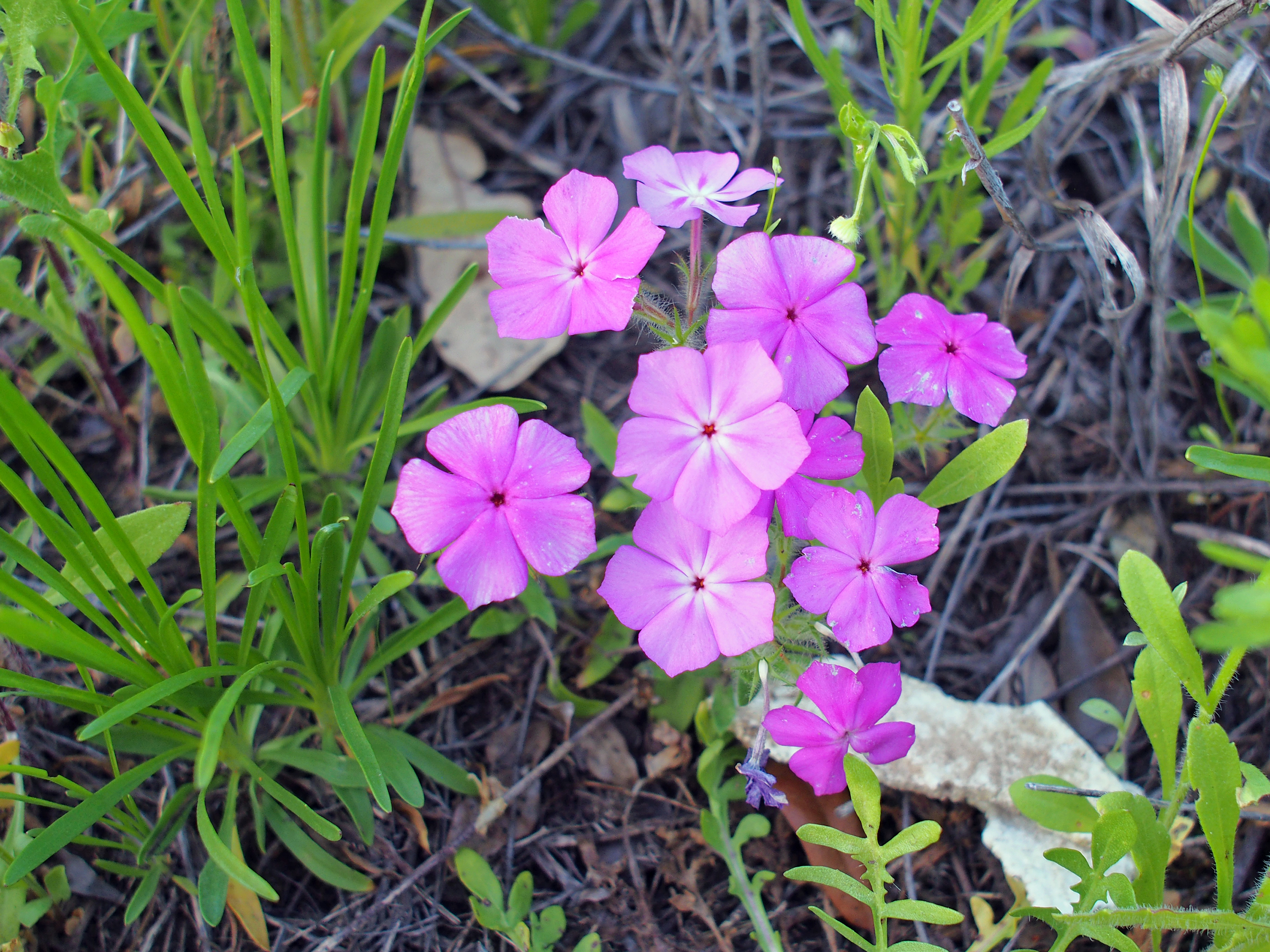 purple prairie verbena (Glandularia bipinnatifida) (back left)