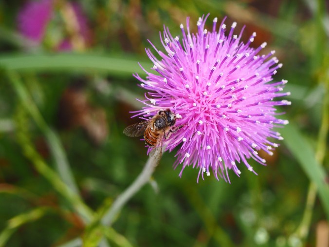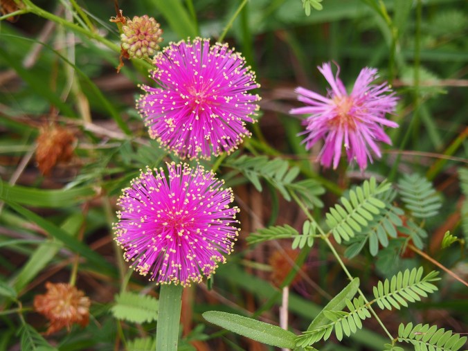 Sensitive Briar (Mimosa quadrivalvus) grows wild along the railroad tracks. I remember it being more fragrant than the ones I found today. Oh well, it is still beautiful.