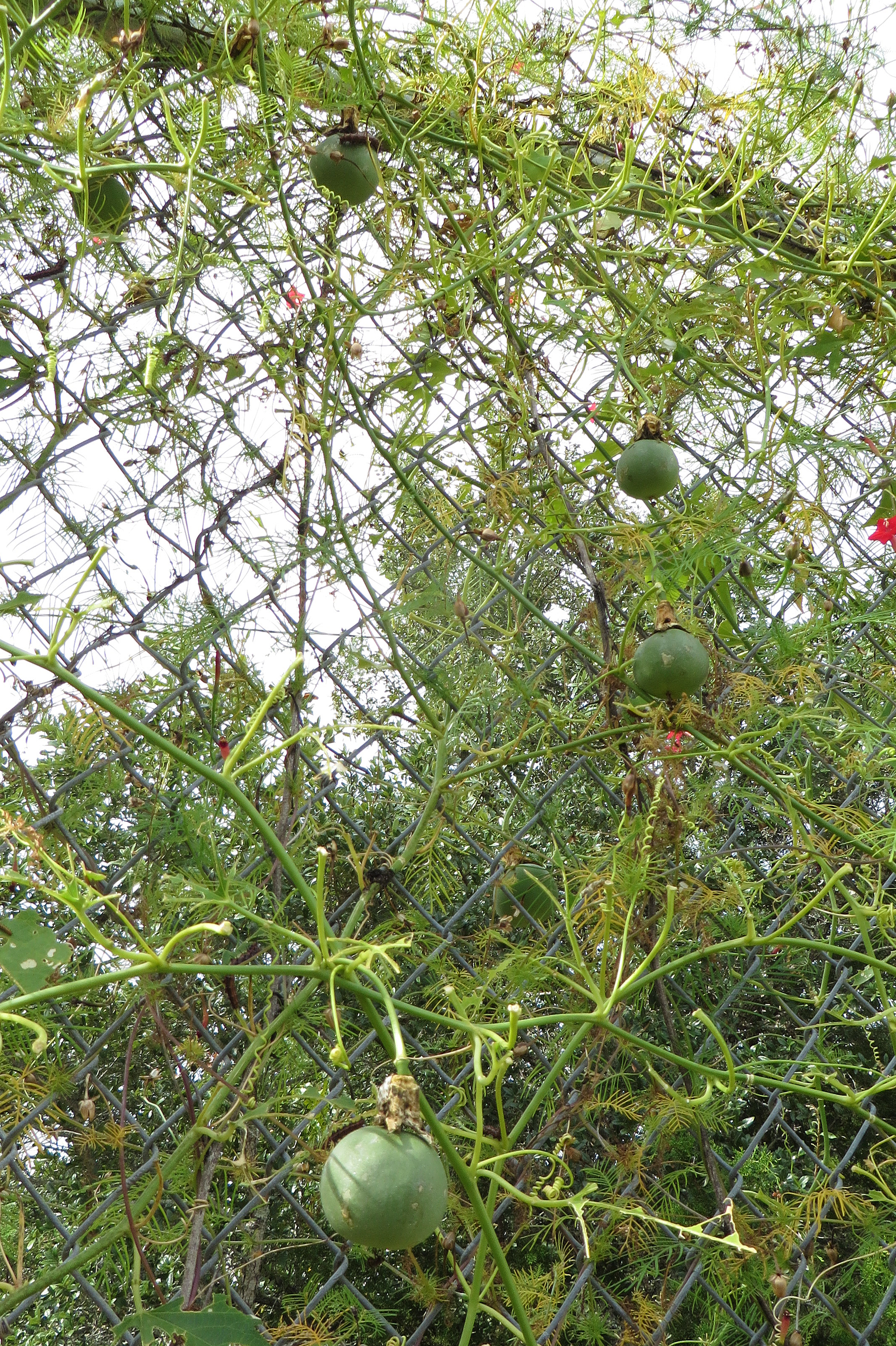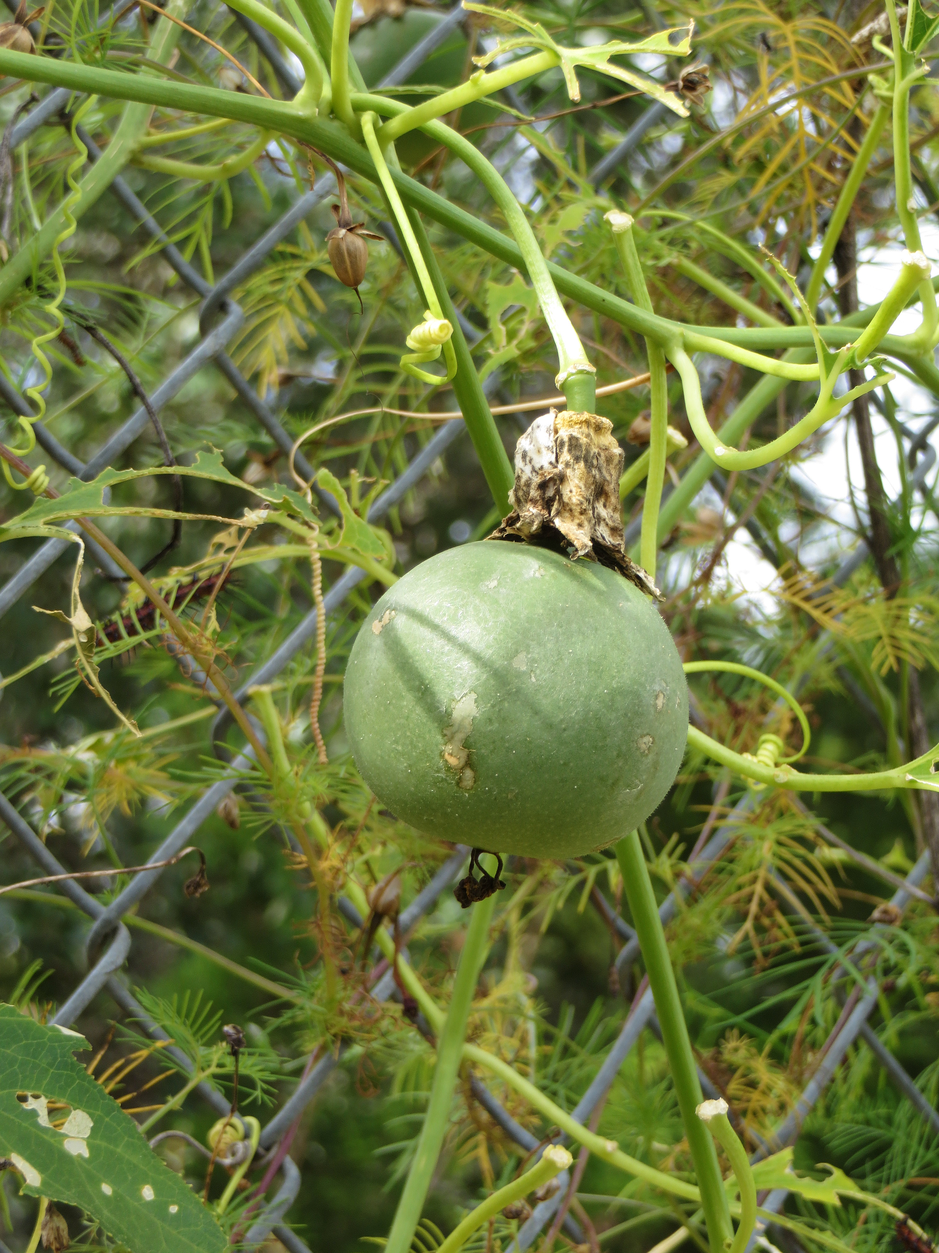 This year the vines produced fruit. We counted eight passion fruit today. I hope the larvae do not like to eat that too.