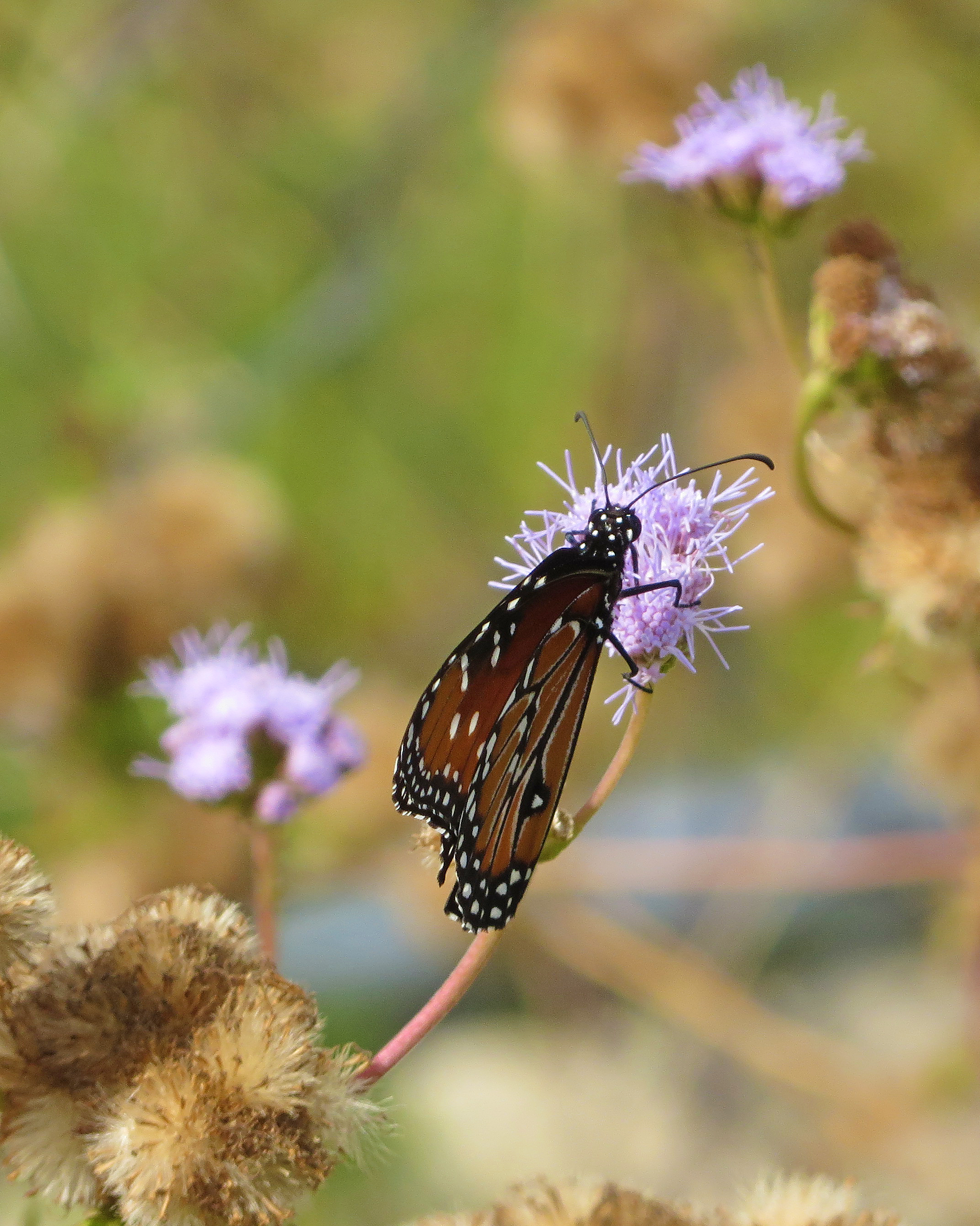Earlier this year we had the Gulf fritillary butterflies come make themselves at home on my passion vines. Their larvae pretty much defoliated my vines and it was a battle. They seemed to have moved on during the summer, but are now back with a vengeance, once again happily eating my passion vines. They also like flitting around the cypress vines and mist flowers, which is very pretty to watch.